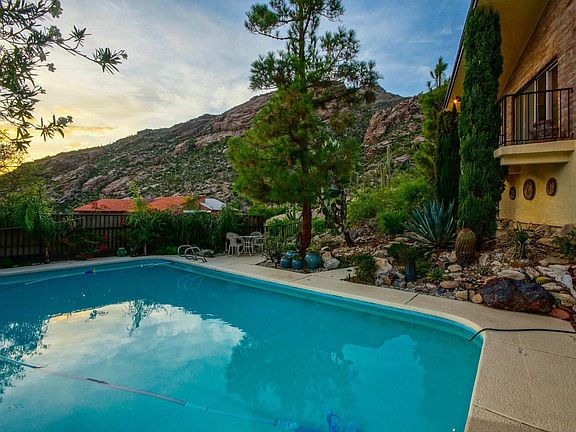For more information on this property, contact the Listing Agent, The Misty Rich Team at (520) 390-3870 or mistyrichteam@gmail.com. TOP OF THE WORLD VIEWS! Exquisite, contemporary 2278sf home plus separate 402sf guest house. David Fraker designed and built to capture sweeping mountain, sunset and city views throughout entire home. Features walls of windows, soaring ceilings, Livingrm and MBdrm fireplaces, 18" marble porcelain tile, cherry kitchen cabinets, granite countertops, stainless steel appliances, tall arched doorway and much more. Enjoy finest resort living on your own 4.96 acres (including sparkling pool) within the gated community of Skyline CC - Tucson's best kept secret! Be sure to click video tour tab!
