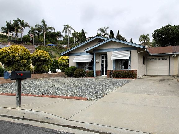 Welcome to this delightful single-story home, ideally situated on a tranquil cul-de-sac. Step into the inviting living room, where soaring ceilings and abundant natural light create a bright and airy atmosphere. The kitchen, featuring updated cabinets, seamlessly connects to the dining area, featuring a pleasant view of the cul-de-sac. Both bedrooms feature sliding glass doors that open to a spacious backyard—offering a blank canvas ready for your personal touch. The primary suite includes a private ensuite bathroom, while the hallway hosts a second full bathroom illuminated by a tubular skylight. Recent upgrades include a new furnace, water heater, and installed soft water tanks. Carpet has been removed from the primary bedroom, living room, and bathrooms, revealing smooth concrete floors ready for your choice of flooring. The kitchen, dining area, hallway, and second bedroom feature easy-care linoleum flooring. Additional amenities include a 1-car garage with an automatic door, drywalled interior, washer and dryer hookups, and direct access to both the kitchen and backyard. Located in a wonderful community with no HOA or Mello Roos fees, this home is close to Guajome Regional Park, offering lake access, hiking, and biking trails. This property presents incredible potential in a prime location—don't miss the opportunity to make it your own!
