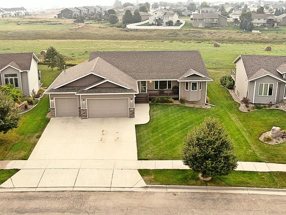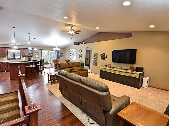 Spacious ranch, walk-out home in Horizon Heights, close to all schools! No backyard neighbors!! Wide open living room, dining room, kitchen as you enter home, vaulted ceiling! Maintenance free deck off dining room. Primary suite on one side, with laundry and entry from garage. Two bedrooms and bath on other side of main living area. Custom closets throughout! Granite kitchen countertops, under cabinet lighting. Lower level has a large, area with pool table and wet bar, with a family room and fireplace; two more bedrooms and a bathroom. Large utility room with storage. Walkout from lower level to paver patio and firepit area! Garage is insulated, sheetrocked and heated with water and floor drain. There is a kennel at the back of the garage that has a dog door out to an outdoor kennel. New roof and gutters 2023! Home was built by Hallmark Homes in 2009.