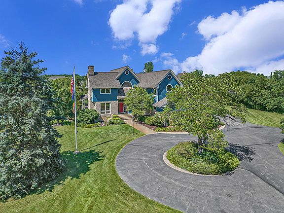 Discover the perfect blend of seclusion and convenience in this exquisite Lodi Township home, built by architect John Rosypal. This magnificent home offers picturesque water views, pristine landscaping and privacy. This custom built one of a kind home features a contemporary design with unique windows and distinctive architecture filling the home with light and panoramic views all on 2.6 acres. It offers 4 bedrooms, 41/2 bathrooms, 4 fireplaces and 2 wet bars. Diligently maintained with new HVAC in 2020, new water heater 2022, exterior paint 2022, new windows and new exterior lighting. No detail has been overlooked in the design of this home. The light will greet you upon entry into this stunning foyer. Illuminating round windows not only showcase as focal points but are wonderful and will be sure to bring sweet dreams to your slumber.