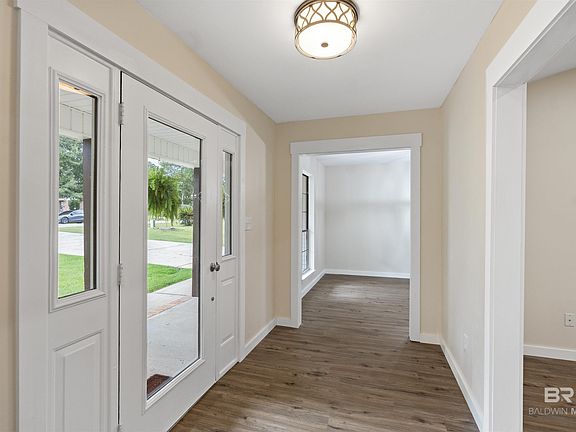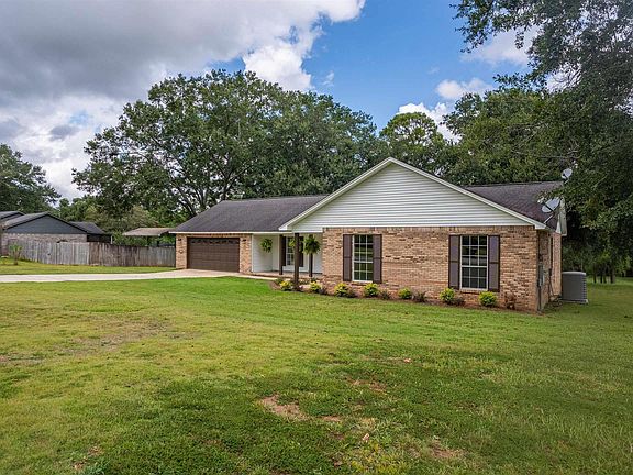 Introducing the perfect brick Ranch-style home for sale, boasting a stunning wooded view on a .50 acre lot! This property features a spacious 2 car garage, a Workshop with power and water, and a large back Deck overlooking the serene landscape. Step inside the 4 bed/2 bath home to find a formal dining room and breakfast room for those cozy family meals. The Primary Suite is outfitted with a Vaulted Ceiling and tasteful hanging Barn Door, and the entire house has been thoughtfully updated with quartz countertops, brand new floors, stainlesssteel appliances, and fresh paint. The addition of all new light fixtures adds a modern touch to this classic home. Don't miss the beautiful stone wood-burning fireplace, perfect for cozy winter nights! Updated inside and out, this property sits in one of Loxley's most sought-after neighborhoods, Glenshire. Its central location puts you within arm's reach of the best spots in town, as well as minutes from Baldwin County's major highways and the Interstate! This listing won't last long – schedule a showing today!! Buyer to verify all information during due diligence.