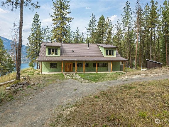 Welcome to your own luxury two home fully furnished retreat on 18.22 acres on beautiful Lake Roosevelt. Main house has been freshly renovated, w/gleaming quartz countertops, generous island,& beautiful cabinets, accented with a stone wood burning stove. Beds are spacious for you & guests, Primary bedroom is large w/beautiful tile work along w/French doors that open to the covered back patio. As you climb the rustic staircase you find a large loft on each end of the house that could be 2 additional beds. Second home has 2 bd/2bth w/game room. Along the 2 houses this property also offers a 32x32 shop w/ample storage & your own private lake access. Come make this your own paradise with the lake activities, hunting, & outdoor opportunities.