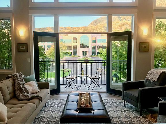 Loft home at Riverwoods! Rarely available and has incredible million dollar mountain views of Timp! Walking distance to the Shops at Riverwoods with many restaurants, theater, and many excellent restaurants. 15 minutes to Sundance ski resort, close to BYU and UVU. Development is along the Provo River biking/walking trail that leads through Provo canyon and to Utah Lake. This unit is also within walking distance to many local businesses such as Qualtrics and Vivint. 3 Spacious bedrooms (two are masters with en suite) with three full bathrooms, quartz bathroom countertops, new paint in great room, and in addition to two smaller balconies, this unit has an added bonus of a 160 square foot deck off the loft master with a spigot (not all have spigots). Flooring is carpet in the bedrooms and waterproof COREtec waterproof vinyl throughout remainder. Working gas fireplace that really heats up the room nicely! Newly painted great room, newer carpet and flooring throughout. Wired with Google Fiber. This unit also has a two car garage with high ceilings and drop down storage racks. Located steps away from the gym, and this unit has the best garage parking/maneuvering access in the Village. (Address lists #113, however there is no unit number and has its own private entrance.) Great ski/outdoor home! Will work with buyer's agents. Taxes for 2020 estimated $2,134.