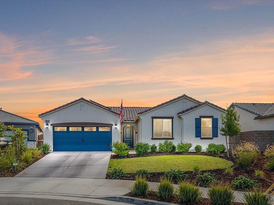 Your new home awaits you in the gated community of Juliana's Garden! This beautiful house, built in 2020, is situated on a peaceful cul-de-sac, offering privacy and tranquility. Enjoy the beauty of nature with the nearby parks and trails. This 3 bedroom, 2 bath home provides ample space for comfortable living. The additional den, featuring a barn door, offers endless possibilities as an office, playroom, or formal dining room. The kitchen is a chef's delight, equipped with stainless steel appliances, granite countertops, and extra features such as a reverse osmosis water filter system. The overhead storage racks in the garage provide extra storage. The solar system is fully paid off, reducing your energy costs. It even comes with a solar cleaning system to ensure maximum efficiency. Step into the backyard oasis, fully landscaped with beautiful flowers and fruit trees.