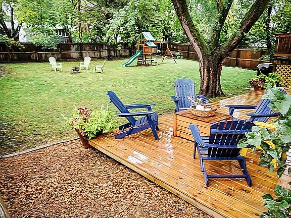 Don't miss this completely updated home with oversized shaded yard! Sellers have taken care of all big ticket items for you: updated bathrooms, newer roof, rich looking flooring on main floor, stainless steel appliances, 6' foot wooden fence installed, expanded lower concrete patio for a cozy outdoor space. Playground inc. Three bedrooms on upper floor with full bath nearby. Bsmt staged for master bedroom or large rec space. Closet system stays for add. storage. W/D inc. Move in ready, well maintained and clean home!