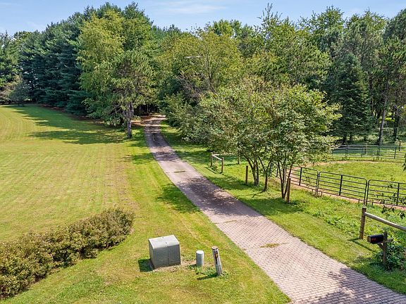 This beautiful 5+ acre setting in southern Frederick county offers privacy, convenience (10 minutes from town and access to major routes) and has a wooded approach plus open rear pasture. This contemporary home offers walls of glass taking in scenic views, vaulted ceilings, natural light, a main level primary suite, and a fenced pool. Located in a small rural neighborhood with horse properties and large sweeping lawns, this home awaits your custom touches.