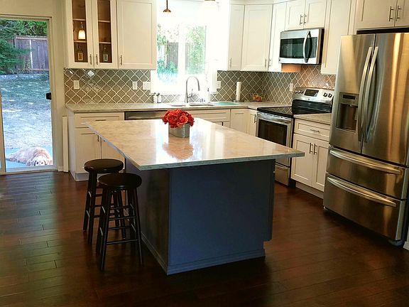 Beautiful Mill Creek/ Silver Lake area rambler with large fenced yard. Updated open concept design with new hardwood flooring throughout, large eating island in kitchen, slab quartz counters, arabesque tile backsplash, Shaker cabs, stainless steel appliances, new paint, solar and interior lighting, millwork, windows, window treatments, and porcelain tile entry. Over 1,240 square feet with 3 bedrooms plus 2 full baths. The Living Room includes a bay window and is open to the Kitchen & Dining Area and Family Room. Back slider leads to outside patio/ barbecue area with sun table & spa. Two car attached garage with additional freezer, refrigerator, and pool table. All appliances stay. Gas fireplace insert in Family Room heats the home nicely & ceiling fans keep it cool in summer. Excellent location; easy access to shopping, freeways & Snohomish Schools. Professional landscaping. State of the art dialed-in Security System. 2015 lifetime Leaf-Guard gutter system. 2015 Water heater. Neighborhood Description Excellent residential neighborhood close to schools, shopping, and major arterial roads/ freeways. Less than 2 miles from Silver Lake and Mill Creek.