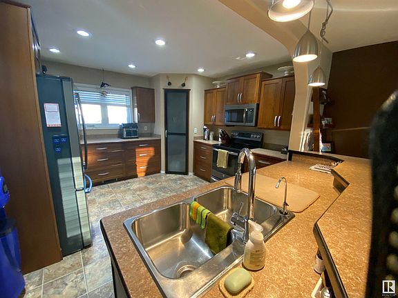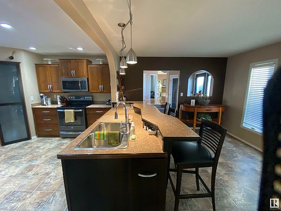 Beautiful 2200+ sqft bungalow located in Consort, AB. This spacious bungalow was originally an older older home that was substantial renovated and had a new addition with full basement that is fully developed with a spacious bedroom bathroom and large rec room with a wet bar. The main floor has a spacious living room with a gas fireplace, a large primary bedroom with a walk in closet and a 4 piece ensuite. The kitchen has been updated the appliances are approx. 4 yrs old when the home was renovated the former living room was converted into a large dining room. in the older part of the house is a third bedroom and 4 piece bathroom. Attached to the home is a double insulated and heated double attached drive thru garage in a addition there is a double detached insulated and heated garage that is being used as storage and a man cave. This property has a lot to offer including central air and zero maintanence landscaping.