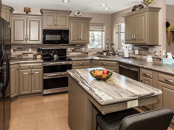 The open floor plan on the main level features a spacious living room, a dining area, and a custom kitchen complete with freshly painted cabinets, newer high definition countertops, vinyl planking flooring, stainless steel appliances, island, and plenty of counter space for meal preparation. There is also a built in custom cabinet kitchen nook and window bench seat. The main level offer 3 bedrooms including the primary suite w/ walk in closet, large vanity with 2 sinks and 3/4 bath. The finished basement offers even more space for entertaining with a spacious family room offering daylight windows and a cozy fireplace perfect for those chilly evenings when you just want to relax at home. Two additional bedrooms and another bathroom. There is also another built in custom cabinet for dry bar or extras. One of the highlights of this home is the surround sound system that creates an immersive audio experience in the Outside you will find a private backyard with mature trees, sprinklers, paver patio, 2 large raised garden beds and fenced yard. Located in the desirable Boulder Ridge development, this home offers easy access to a variety of amenities including shopping, dining and entertainment. Triple garage is complete with a heater, epoxy floor, ceiling fan and ceiling speakers. Need more room? There is a camper pad alongside the garage. This home truly has it all. Don't miss out on the opportunity to make it yours today!