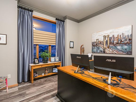 Located in Horizon Heights this beautiful two story home has everything you are looking for. A grand staircase and office greet you as you enter the home. The main floor living room looks like it came out of a Pottery Barn catalog, where you will find tall windows and stone fireplace to keep you warm during the cool days and nights. Step down to the spacious kitchen and dining room with center island, pantry, gorgeous cabinets and rich newer flooring. For added convenience the laundry is located just adjacent to the kitchen. There are 3 nice sized bedrooms on the upper level including the master bedroom suite with full master bath and a large walk in closet. Don't forget about the walkout lower level that is highlighted by another fireplace in the huge family room, two additional bedrooms and full bath! The large backyard is fenced and includes a custom fire pit area and hot tub! Way too many extras to list everything. This home is sure to impress!
