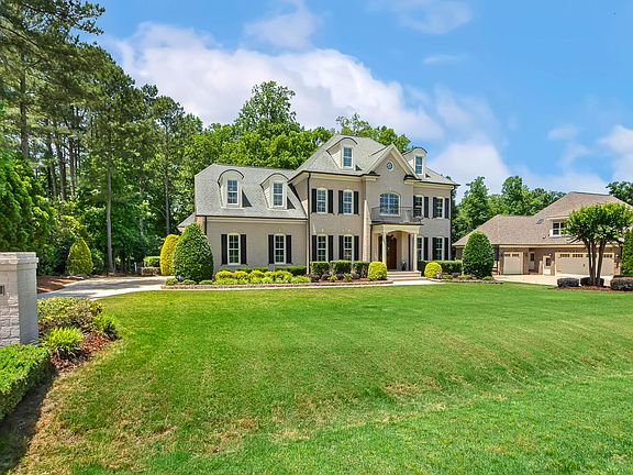 Welcome to this stunning 4 BR, 4.5-bath custom brick home, beautifully situated on a large, private lot with lush professional landscaping and exceptional outdoor living spaces. This home combines timeless craftsmanship with thoughtful design and modern conveniences—perfect for everyday living and stylish entertaining. Step inside to find site-finished hardwood floors throughout most of the main level and detailed custom trim work that adds warmth and elegance. The main floor features a private study, a spacious guest suite, and an open-concept layout flooded with natural light. The chef's kitchen is a true showpiece, equipped with a gas cooktop, pot filler, wall oven, granite countertops, travertine backsplash, stainless steel appliances, and a breakfast bar with pendant lighting. A built-in china cabinet, recessed lighting, and a cozy breakfast room complete the space. The kitchen flows seamlessly into the family room with gas log fireplace—ideal for relaxed evenings or hosting guests. Upstairs, you'll find new upgraded carpet (2023), three generously sized bedrooms including a luxurious primary suite with a coffered ceiling, sitting area, spa-like ensuite bath with jetted tub, dual granite-topped vanities, tile flooring, separate shower, and walk-in closet. A large bonus room offers flexible living space, and the third-floor recreation/media room is a standout with a wet bar, surround sound, and darkened windows for an immersive home theater experience. Enjoy exceptional outdoor living with a covered porch featuring beadboard and a coffered ceiling, a patio with built-in firepit and grill island, and stone walls that create a backyard oasis. The yard is aluminum-gated and fenced, and is equipped with professional outdoor lighting and a full irrigation system. Additional highlights include a 3-car side-load garage, washer and dryer, and a location that offers the perfect blend of downtown charm and suburban convenience—close to great shopping, dining, parks, and more. Don't miss this rare opportunity to own a beautifully maintained and thoughtfully upgraded home in one of the area's most desirable settings!