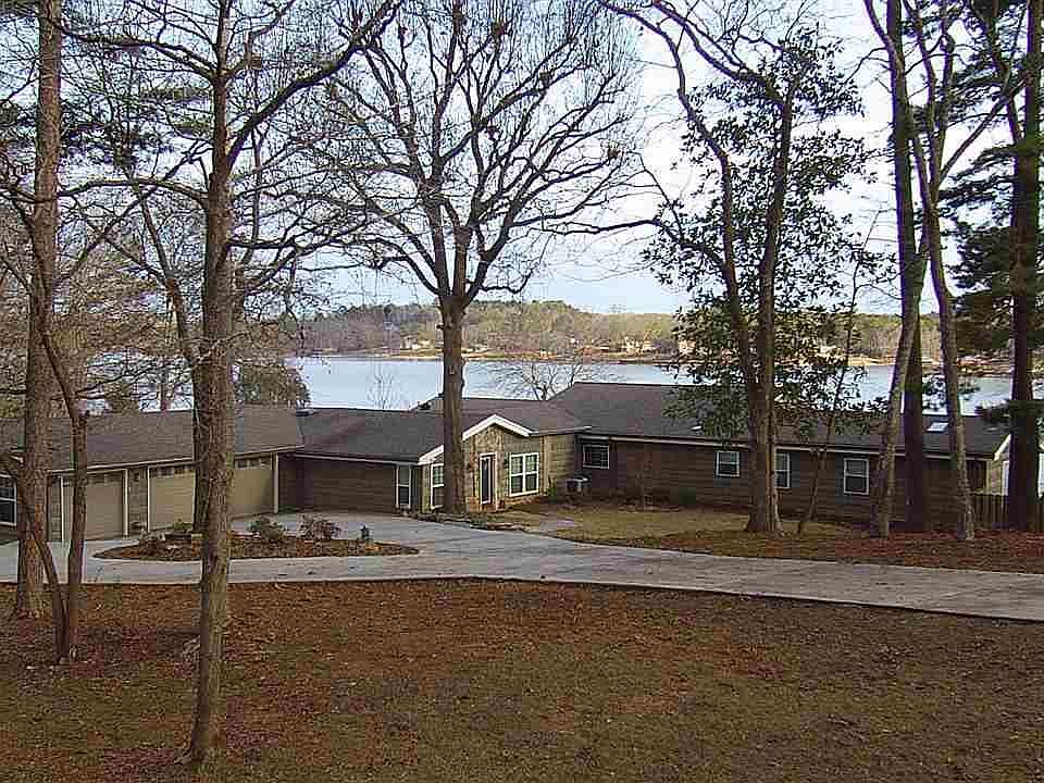 AMENITIES GALORE with this well pointed updated one level brick home with an awesome view of the lake!! Enjoy the gourmet kitchen with solid surface counter tops, Thomasville cabinets, induction stove with pot-filler faucet, while entertaining in the living area with travertine floors and many windows for the views. Also located on the main level is the sunroom overlooking the 22 X 44 inground pool, master bedroom that consists of his and her vanities, soaking tub, bidet, and large shower, with 2 additional bedrooms that all have access to the porch/deck with trek decking. Downstairs has another master bedroom, bath, bedroom/bonus room and 2nd fully equipped kitchen. Great in-law suite potential. The home has a 3-car garage, workshop, boathouse, pier and boat slip, located on the main channel with approx. 320' waterfront with lake access for launching boat. MUST SEE!!!