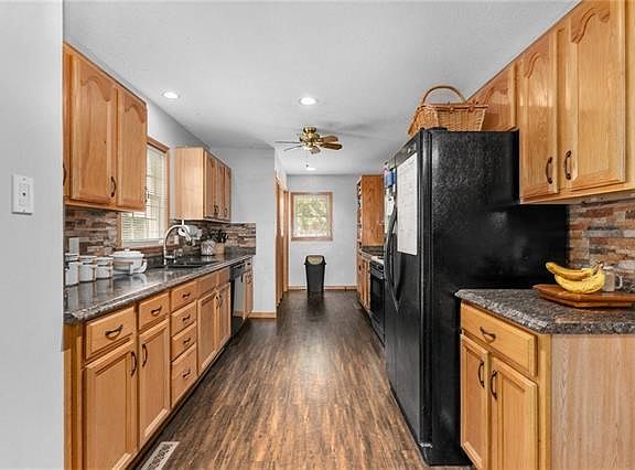 Dynamite Kitchen remodel sets this house apart from all others - all appliances stay, slide-out shelving and good sized as is the dining room and the living rooms. Three bedrooms are generous space with hardwood floors under the carpet and all have ceiling fans. Replacement windows with the furnace and air and hot water tank replaced 7 years ago. Enjoy the full potential outdoors with front porch deck, back deck, shed, big yard and ask about what is staying in the yard, both front and back. The garage picture looks pretty full, but take a good look, it is really very spacious and lumber maybe included. 2022-08-22