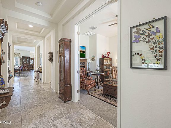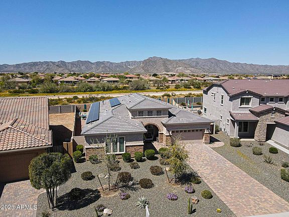 OWNED SOLAR, 9.6kw system! Owner's ANNUAL 2022 APS total under $312! Welcome to this well-designed single story home situated on an over-sized lot with NO neighbors behind. Kitchen boasts HUGE island and pantry, quartz countertops, tiled backsplash and SS appliances. NEUTRAL color palette throughout with contemporary tiled floors, carpeting in bedrooms, plantation shutters, and charming two-way gas fireplace. Gracious primary en-suite with DUAL VANITIES, soaking tub, large walk-in shower, and extensive closet. Three spacious secondary bedrooms, one with an EN-SUITE, all have walk-in closets. Additional STORAGE is plentiful. Even the DRIVEWAY has extra room! Complete your desert- living experience with the refreshing POOL and covered PATIO! Great home in a great LOCATION. SCHEDULE TODAY!