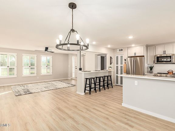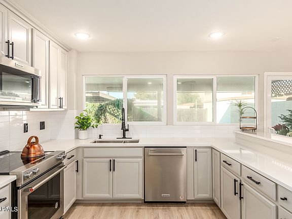 This gorgeous townhouse in the desirable Chateau De Vie is the one you're looking for! Come inside to discover the captivating interior w/a semi-open floor plan that flows with modern sophistication flaunting wood-look floors, soothing palette, and plantation shutters. The stunning kitchen showcases a plethora of white cabinets w/crown moulding, sparkling SS appliances, recessed lighting, see-through pantry, quartz counters, tile backsplash, and a peninsula w/breakfast bar. Primary bedroom has deluxe bathroom w/rain shower head and a walk-in closet. Delightful backyard, excellent for small gatherings, w/desert plantings, cozy covered patio, tool shed, pavers, and direct access to the carport. Enjoy the fantastic resort-like amenities that this neighborhood offers! Schedule a visit today!