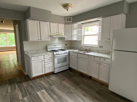 Beautifully renovated apartment. Freshly painted, new floors and light fixtures. Bathroom and kitchen newly remodeled and enclosed back porch. Large bedrooms with extra wide closets. Central heat and air. Ready to move in! Lots of street parking. Adjacent to I-90/94. Close to CTA blue line, metra train, parks. nightlife.