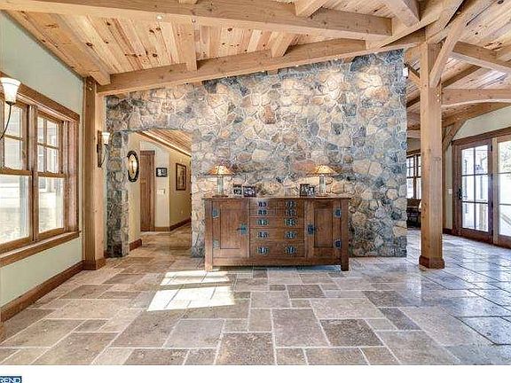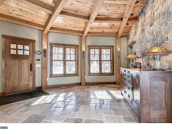 This carefully crafted, elegant Arts & Crafts style home features beauty in design with an emphasis on honesty of form & function using materials harmonious with its surroundings. Muscular timber framing & the textures of a multitude of natural materials create an open, graceful living space. The home is located on one of the prettiest roads in Bucks County just five minutes to Doylestown Borough. Set back from the road, this home is a complete renovation including all plumbing, wiring, windows, insulation, lighting, trim, doors, and flooring as well as roof and all systems are new. Entering the dramatic portico to the front porch with a combination of bluestone & mountain fieldstone as well as cement board siding leads to the beautiful entrance hall with mahogany beam work. Some of the Interior features include: Kiln-dried Douglas Fir custom cut and built timber framing, interior walls with exposed beams & pine tongue & groove ceiling, walls of new windows, thoughtful lighting including Hubbarton Forge hand forged bronze fixtures, Carlisle wide plank hardwood floors & Hickory hand oil-rubbed floors, interior 3 panel craftsman cherry wood doors, solid cherry trim throughout and custom cherry and birds-eye maple stairways. The kitchen is remarkable & open to the dining room an spectacular great room. Wolf & Miele appliances, inset cherry cabinetry, black pearl honed granite & a solid raised counter made from a single cut South African Bubinga tree. There are two wood burning fireplaces, a stone fireplace in the great room & a custom mantle in the living room with Mercer tile surround. The great room is superb with open beaming & radiant heat flooring. The butler pantry fills out the first floor, with Bosch dishwasher, copper sink, exposed stone wall & cherry cabinetry. On the second floor are 4 equally stunning bedrooms & beautiful baths. The master bath features cherry cabinetry, a six foot soaking tub, radiant heat floors, custom frameless glass enclosed shower with pebble floor. The basement has a finished rec room, exercise room & workroom & the perfect spot for the future wine cellar. Custom solid Alder Wood front door with Arts & Crafts glass & sidelights, Marvin Atrium doors, full house fire suppression system, central vac throughout, security system & so very much more. Descriptions of this property simply do not do it justice. Detailed specification sheet available. Please note permit in place for 3 car detached garage, but has not been built.