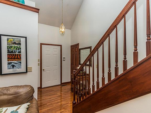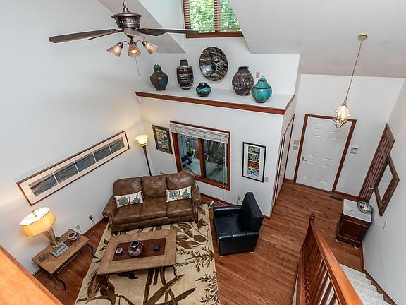 A BEAUTIFUL HOME! Two-Story, attached home on a scenic wooded lot with multi-level decks and multi-level landscape pond with waterfall. Hardwood flooring on Main Floor. Vaulted Great Room with plant ledge. First Floor Den/Dining Room. Spacious Kitchen has oak cabinets, updated granite countertops and appliances and walks out to a Three Season Room and private balcony/deck. First Floor Master Suite with shower Bath. Upper Level Loft/Bonus Room with 2nd fireplace. Full, Walk-Out Lower Level has Recreation Room with Bar, Den/Exercise Room/Craft Room, Full Bath and 4th Bedroom (perfect In-Law/Teen Suite). Updated HVAC, gutters, H2O heater, wood floors, appliances, interior paint, granite countertops and more! 4 BRs and 3.5 Baths. Nearly 3,200 SF! Only $339,900! Call DeLena Today!