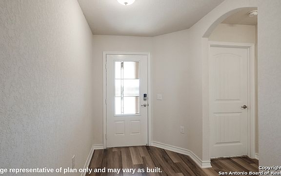 The Knight is a single-story, 1901 square foot, 4-bedroom, 2 bathroom, layout designed to provide spacious, comfortable living. The inviting entry opens to a large decorative wall nook and a spacious open concept family room and eat-in kitchen that is perfect for entertaining friends and family. The kitchen is complete with beautiful granite countertops, stainless steel appliances, classic white subway tile backsplash, and an oversized kitchen island. Two secondary bedrooms and the second full bathroom are located of the entry to the home and a third bedroom and utility room are located off the kitchen. The private main bedroom is located at the back of the house and features a large, relaxing ensuite bathroom complete with a separate tub and shower, dual vanities, water closet, and spacious walk-in closet. Additional features include tall 9-foot ceilings, 2-inch faux wood blinds throughout the home, luxury vinyl plank flooring in the entry, family room, kitchen, and dining area, ceramic tile in the bathrooms and utility room, pre-plumb for water softener loop, and full yard landscaping and irrigation. You'll enjoy added security in your new home with our Home is Connected features. Using one central hub that talks to all the devices in your home, you can control the lights, thermostat and locks, all from your cellular device.