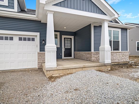 Maintenance free living in the Harmony! An open concept with 2 bedrooms, 2 baths and a flex room with French doors that can be used as an office or den. The Kitchen showcases white maple cabinets with quartz countertops, stainless steel appliances, island and walk in pantry. The Owner's Suite has a beautiful, tiled shower, double bowl vanity and walk in closet. Relax outside on your deck or in your sunroom to enjoy the view of the pond. Look out basement with roughed in plumbing. Fully landscaped with irrigation. All with the Industries Best Customer Care Program and Warranty.*Pond view *White maple cabinets *Quartz Countertops *Island *Walk in pantry *Sunroom *Tiled shower *Look out basement