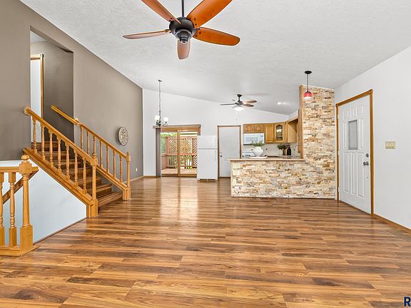 Here it is!!! Don't miss this 4 bed, 2 bath, 2 stall multilevel home in southwest Sioux Falls. Enter this adorable home on the large covered front porch perfect for enjoying the summer nights. The main floor is completely open with a vaulted ceiling consisting of the living room, dining room, and kitchen. The kitchen has a great breakfast bar and tile backsplash and there is a slider to the private deck. Upstairs two good sized bedrooms with walk-in closets and a full bath. The lower level has a family room with a walkout to the backyard as well as a cozy fireplace. One additional bedroom with a double closet and another full bath complete the lower level. In the basement is a huge 4th bedroom or perfect for an additional living space. There is also a laundry room and separate utility/storage room. Enjoy new carpet throughout the home.