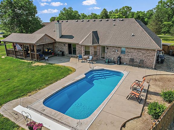 Welcome to this well-maintained 3BD/2BA ranch in New Palestine's popular Countryside. This all brick ranch sits on just over a half acre, has a fully fenced back yard with an inground heated fiberglass pool with automatic cover, large covered patio/deck area, mature trees and storage shed. The spacious open floor plan offers a great room with vaulted ceiling, gas fireplace, formal dining room, updated kitchen with a breakfast nook, huge laundry/mudroom, and 3 spacious bedrooms. Check out the neighborhood amenities including tennis, basketball, and pickleball courts, a shelter and picnic tables for residents. Budget for gas $141/month, budget for electric $181/month, water average $25/month.