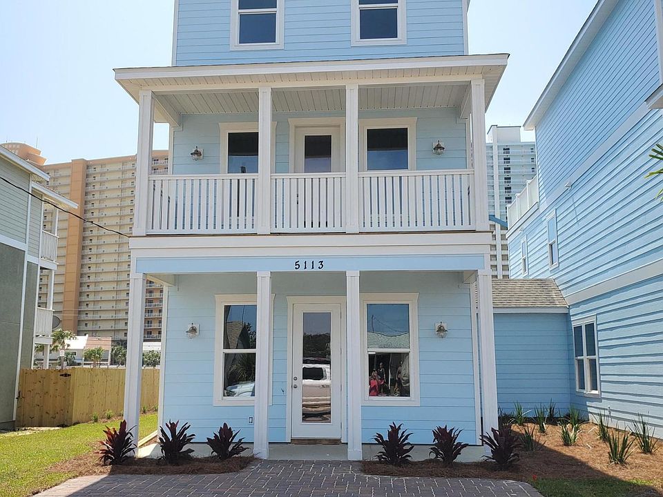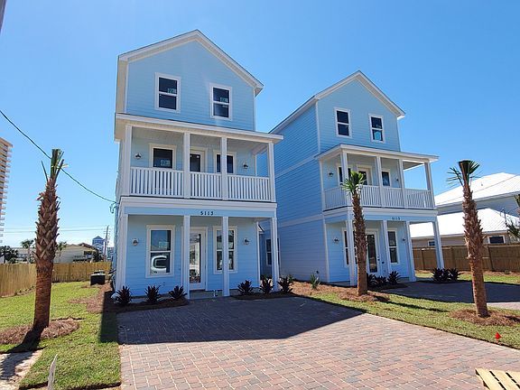 NEW CONSTRUCTION!! EAST END PANAMA CITY BEACH!! Location, Location - One Block North of the The Gulf of Mexico with Gulf Views from the 2nd Story and 3rd Story Tremendous Deck . This beautiful 3 Bedroom, 3.5 Bath New Construction Home features 9/10 Foot Ceilings...10Ft First Floor, 9ft 2nd Floor. and Vaulted 3rd Floor. The Kitchen has All Wood Cabinets with Soft-Close Doors and Drawers, Granite Counter Tops with under Mount Sinks, Breakfast Island and Kitchen Aid Stainless Appliances. Some of the Standard Features include: Tremendous Master Walk-In Double Shower, 8ft Interior Doors, Crown Molding, Paver Driveways, 14 SEER Heat Pumps, LOW E Double Paned Windows, Spray Foam Attics. Put this wonderful New Home at the Top of your List of Places to See. Duplex connected only by a great Storage Area between the two Structures.