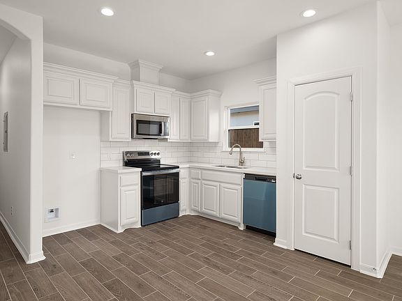 This home features four bedrooms and an open-concept layout. The spacious family room flows seamlessly into the dining area and kitchen, creating an inviting space for relaxation and entertaining. The kitchen is equipped upgraded painted pure white cabinets, quartz countertops, and GE stainless steel appliances. The primary suite offers a spacious layout, a full bathroom, and a large walk-in closet. Additionally, the home includes a utility room, and wood- visual tile flooring throughout home. Maple wood cabinets Quartz countertops Tile flooring throughout home GE stainless steel appliances- Electric *Photos do not represent the final production of the home