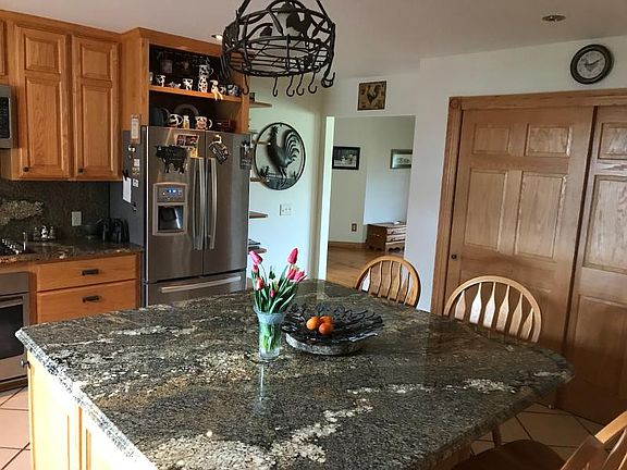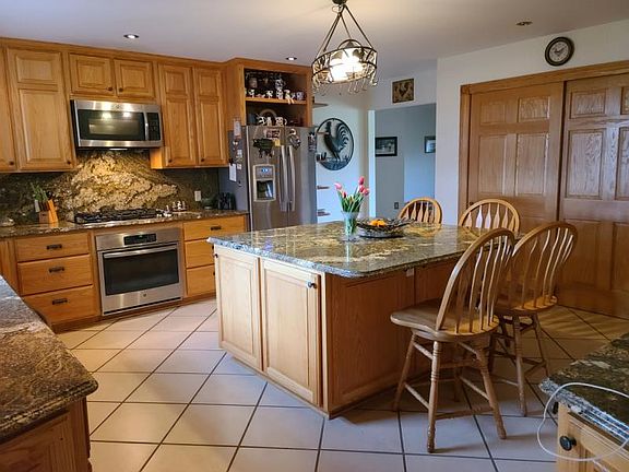 This is the rare Masterpiece Estate you've been looking for! On 10 country acres, dotted with fruit trees, a stocked pond, remarkable landscaping, an in-ground pool with stamped concrete patio and custom outdoor kitchen.. the outdoors are just as stunning as the indoors! In the heart of the home, the cook's kitchen is a treasure. Granite countertops, spacious double pantries, and an island with ample space for a spread. Hardwood floors extend throughout the main level which features three large bedrooms, two and half bathrooms, formal dining, living room with a fireplace, and a sitting room that opens to the outdoor entertainment area. The lower level leads to a full granite and wood kitchen accompanied by an open living space. Two additional bedrooms, a bathroom with walk-in shower, a fully functional craft room and a gym/entertainment room complete the living space. Plus! Geothermal heating and a GENERAC generator.