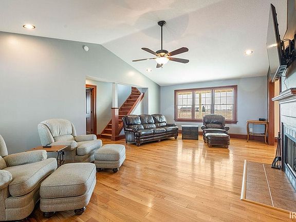 Nestled on 2.19 acres of peaceful countryside, this beautifully remodeled farmhouse blends classic charm with modern updates. Renovated in 2010, the home features an inviting open-concept design filled with natural light. The spacious great room boasts a vaulted ceiling and a cozy fireplace, creating a warm and welcoming atmosphere. With 4 bedrooms and a potential 5th, this home offers plenty of space to fit your needs. The main-level master suite is a true retreat, featuring a stunning bathroom with luxurious finishes. Upstairs, additional bedrooms provide comfort and flexibility. A sunroom adds extra living space, perfect for enjoying the picturesque surroundings year-round. The kitchen is a standout, showcasing exquisite Sorensen custom cabinets that blend elegance and functionality. A wraparound porch offers the perfect spot to enjoy morning coffee or take in the serene sunrise over the open landscape. Two spacious barns provide ample room for storage, projects, or livestock, while an oversized two-car garage ensures plenty of space for vehicles and equipment. The backyard is an entertainer’s dream, highlighted by a stunning inground pool—ideal for relaxing on warm summer days. With no close neighbors, this private retreat offers both tranquility and seclusion, making it the perfect escape from everyday life!