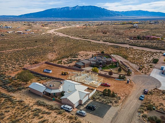 New custom home to be completed April 2023. This single story Northern New Mexico style custom home will have a bright and open floorplan, custom finishes & high ceilings throughout, kitchen features granite countertops, knotty hickory cabinetry, stainless steel appliances, pantry & a huge breakfast bar island. Primary bedroom en-suite with a shower, double sink vanity & spacious walk in closet, located opposite others . A large laundry room with wash basin. Enjoy the covered patio with morning coffee or the evening sunset reflection on the Sandia Mountains. Gated backyard access with room for all of your recreational vehicles. Bring your imagination to the large private walled backyard with phenomenal mountain views. Maybe a pool. You still have time to pick your personal color schemes