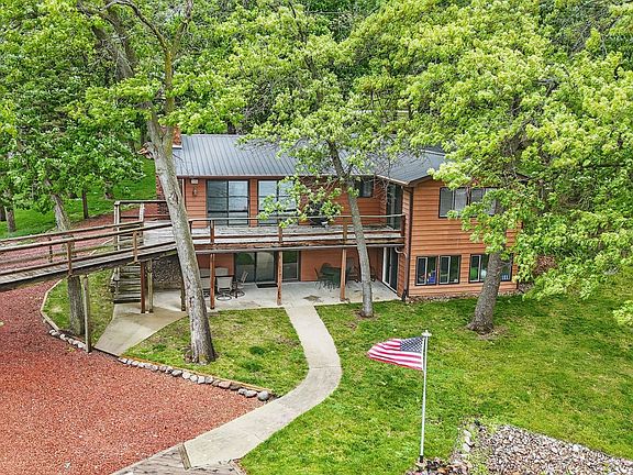 PICTURE THIS: Your very own PRIVATE PENINSULA! with a beach and over 400 ft of shoreline—a slice of paradise pie! This dreamy property is a lifestyle upgrade! With 3+1 bedrooms, 3 bathrooms, and an open-concept layout offering inspiring lake views from nearly every corner. Slider doors lead to an outdoor oasis, perfect for sipping on something special while basking in serenity. The main level offers a primary suite with its own deck, alongside another bedroom, kitchen, dining area, and a half bath. Lower level walk out features a family room with a wet bar and more stunning lake views, plus a patio space, a bedroom, an extra non-conforming bedroom, a full bath, and a sunroom. Ample storage is provided with a two-car garage and a detached garage, plus the dock, lifts and boats are included for your boating adventures. With views that make you feel like you’re living on the water itself, this home is the ultimate retreat for anyone craving the lake life at Lake Panorama. Imagine waking up to the gentle sound of water lapping against the shore, the sun casting a warm glow over the tranquil lake as you sip your morning coffee on the deck. In the evenings, gather with loved ones around a fire pit, sharing stories and laughter as the sky transforms into a canvas of stars. This peninsula paradise is more than just a home—it's an invitation to experience a lifestyle of luxury and tranquility, offering a sanctuary for the soul amidst the beauty of Lake Panorama.