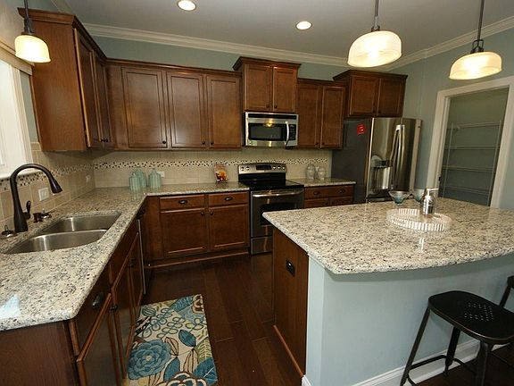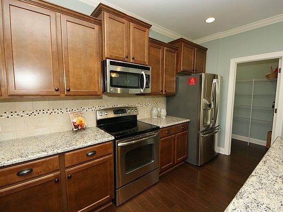 - Features: Breakfast Bar, Kitchen Island, Pantry, Stainless Steel Appliances, Solid Surface Counters