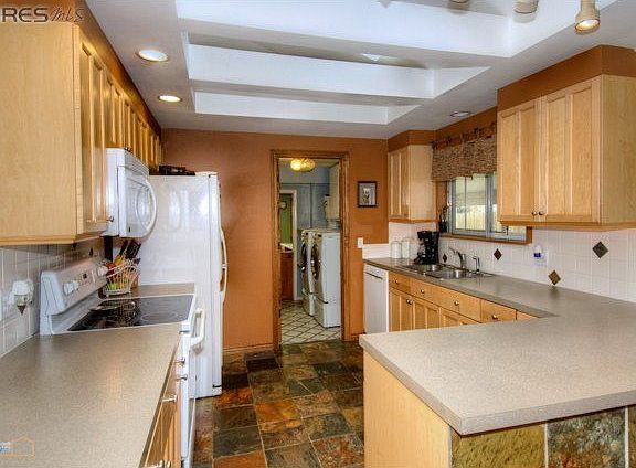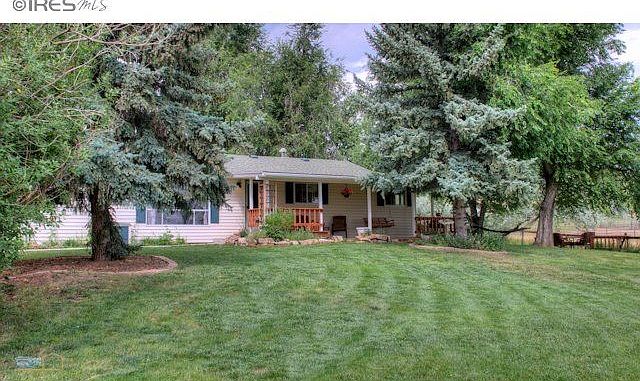 Very private setting with lots of trees in quiet cul-de-sac in southwest Loveland. Property abuts adjoining farm land so there are unobstructed views of Boedecker Lake. This ranch style 4 bedroom, 3 bath home has lots of features including slate and hardwood floors, newer carpet, stone fireplace, built-in book shelves, and bathrooms and kitchen have been recently remodeled. There is a 2-car detached garage plus a 210 sq. ft. office/workshop. Covered porch, fenced, gardens, RV/boat parking.