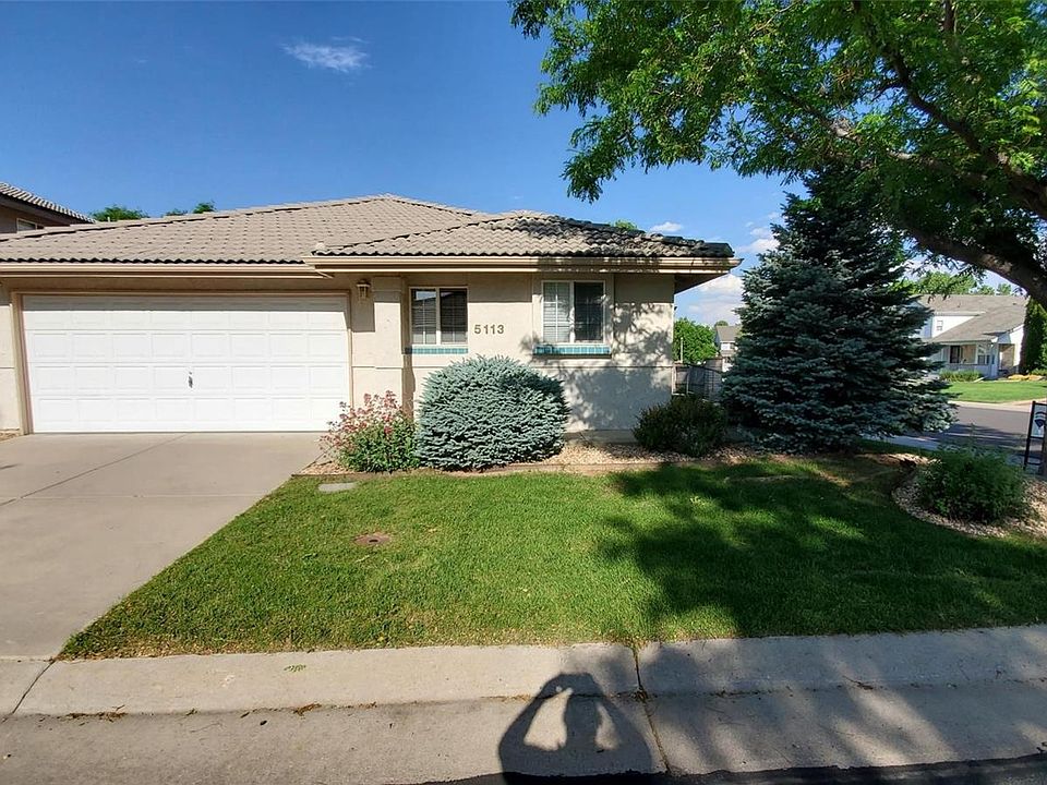 Beautiful ranch style living at its best with this home with 2 bedrooms nd 2 full bathrooms. The kitchen, dining room and living room have a open flow to them perfect fo family gatherings. The den boasts a fireplace for chilly Colorado evenings and the yard is inviting for the cool summer nights. HOA includes snow removal, mowing, and Comcast TV!!!! Don't miss this home close to shopping, restaurants, main roads and golf course. More pictures coming.