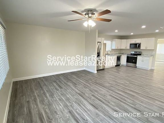 Looking for the perfect home for you? Look no further! Here is a gorgeous 3 bedroom and 2 bath house with a pool. Big yard space great for kids to play while you relax under the shaded patio or by the pool. The home also includes ceiling fans, black appliances with a double oven and glass cook top, has washer/dryer hook-ups. The house does have an RV gate that leads to the back yard. Pool service is include with rent, so you can put your mind at ease and have one less headache. Pets are welcome Some of the surrounding amenities are: -Acoma Park -Sunburst Elementary- Arizona State University West- Banner Thunderbird Medical Center- Glendale Community College, down the street- Greenway High School CALL or TEXT 480-969-9764, to schedule your walk through today