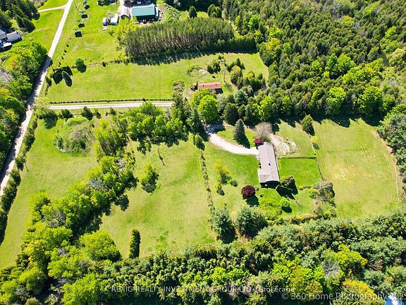 Discover the beauty of nature right outside your doorstep with this stunning 10.5-acre property in the highly desirable Erin Township. Offered for the first time in over 50 years, this lovingly maintained estate features beautifully manicured front, side, and backyards, tranquil forested trails and two picturesque ponds. The unique bungalow spans over 1,500 square feet above grade and boasts three spacious bedrooms. The large family-sized kitchen includes a beautiful breakfast area, while the inviting living and dining room combination offers a charming stone fireplace. The primary bedroom includes a convenient 3-piece ensuite, and its location at the front of the home offers breathtaking views of the garden. The basement features a large Great Room with a concrete floor and a walkout leading to the meticulously landscaped backyard, perfect for entertaining or relaxing. For hobbyists and outdoor enthusiasts, this property is a dream come true. Embrace the extra features a 1,600-square-foot barn, ideal for a variety of uses, two ponds that are perfect for summer recreation and winter ice skating, and private, forested trails to explore year-round. The lower-level garage provides ample space for storage or could be transformed into a workshop or classic car haven. Don't miss your chance to own this once-in-a-lifetime property. Embrace the serene charm of rural living combined with modern conveniences, all just minutes from downtown Erin. This is your opportunity to live your best life at 5114 Allan Path, Erin a charming home with 3 generously sized bedrooms, 2.5 bathrooms, and an incredible 10.5-acre sanctuary
