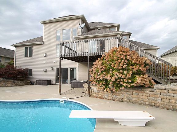 WOW! Rear Yard OASIS with 18x38 Salt Water Pool, Fire Pit, Deck, Privacy VINYL Fencing, Separate Fenced Area for Kids/Pets. Lots of DRAMA 17 Ft Ceiling In Great Room, Wall of ANDERSEN Windows. White Painted Woodwork, Trim & 4" Base Moldings. STAINLESS Samsung Appliances, Updated Sink & Back Splash In 2013 Accent The Kitchen. Staggered Cabinet Tops. Dining Area with Access To Upper Level Deck 14x12, Steps Access The Lower Pool Area. 2 Direct Vent Fireplaces In Great Room & Lower Family/Rec Room. 1st Floor Den/Dining Room. 1st Floor Master Suite with Trey Ceiling & Large Walk-in Closet, Bath with CERAMIC floor & Double Vanity. All Bedrooms Have Ceiling Fans/Lights. WALK-OUT Lower Level, 12 Ft Wet Bar with Dishwasher & Wine Refrigerator. Family Room Area Wired for Projector/Screen, Full Bath, Large Open Area 45x21 Overall-TV Area 25x15, Game Area 19x22, Bar Area 24x12. Other Amenities- Speakers Accent Kitchen, Great Room, Master, Outside Pool Area & Lower Rec Room. 3 Car Garage-3rd Bay 26x11.75, Exterior Door, Pull Down Attic Stairs, Pegboard. RainBird Irrigation with 7 Zones, 90% Efficient Furnace. Great For Entertaining. Enjoy The Tour & Home Amenities! Utility Monthly Averages-$174/AEP, $73/NIPSCO- (Family of 5)