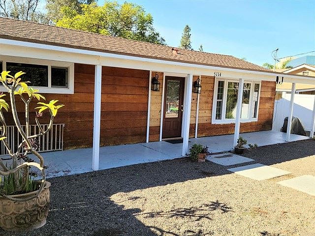 La Mesa Charming & Classic bungalow home. Over-sized & spacious private back yard that feels more like living in the country than the city! Mature trees screen the home from the road for added privacy with covered front porch patio. Open & bright floor-plan as you enter the home, wood flooring throughout, patio doors lead out to a small red wood deck over looking the back yard & canyon view. One side of the detached 2 car garage has been converted to a studio (insulated, dry-walled with engineered hardwood & tile floors), storage shed (8x16) in the back yard & a small building that could be used as an art studio Fantastic location to downtown La Mesa, freeways and all.
