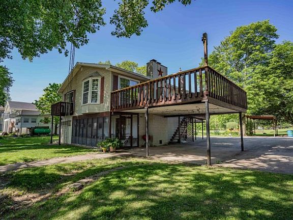 Have you been looking for a nearby getaway? with waterfront access and exceptional views? Here it is: 5114 Old Henderson Road at the Nu Plaza Yacht Club offers all of this and much more! This two story home sits on nearly an acre of property, overlooks the Ohio River, and has over 600 square feet of wrap around deck. The screened-in porch makes for the ideal relaxation spot to enjoy your morning coffee or evening cocktail while overlooking the river and Dutch's Island. Head inside to find an open floor plan with a bar, wood burning fireplace, and main level full bath making this the ideal area for hosting. The second level has an additional living space with a wood burner, eat-in kitchen with updated appliances, large bedroom, full bath, and laundry. Enjoy picturesque views from the private deck off the bedroom. Utilize your green thumb on the additional parcel which is already lined with day lilly's, herb gardens, and much more. Two car ports give your boats, cars, or side by side shade from the sun and elements. There are only so many riverfront lots so take advantage of this opportunity to own one! Home is in a flood plain.