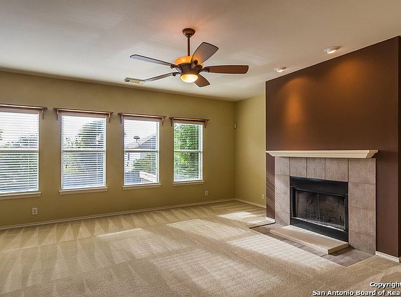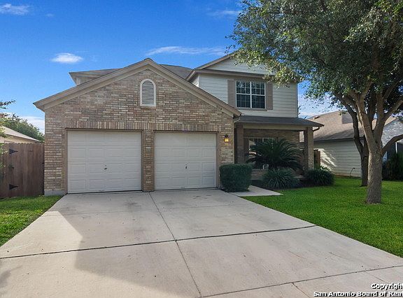 DUAL MASTERS, ONE DOWN & ONE UP! Remarkable, spacious home w/ SWIMMING POOL situated on a Cul de Sac in the Gated Community of Villas of Spring Creek. Great Access to Randolph AFB & Fort Sam Houston! Walking Distance to Schools! 3 lvng areas* Dining room, eat in & island kitchen*Game Room*Guest Suite. Wood burning Fireplace*High Ceilings & Open Floorplan. Carpeting, Tile & Laminate throughout.*Master feat. Sep. Tub/shower w/Sep. Vanity & Garden Tub. Balcony/Deck w/ Mature Trees*Level Lot & Drive! CALL NOW!
