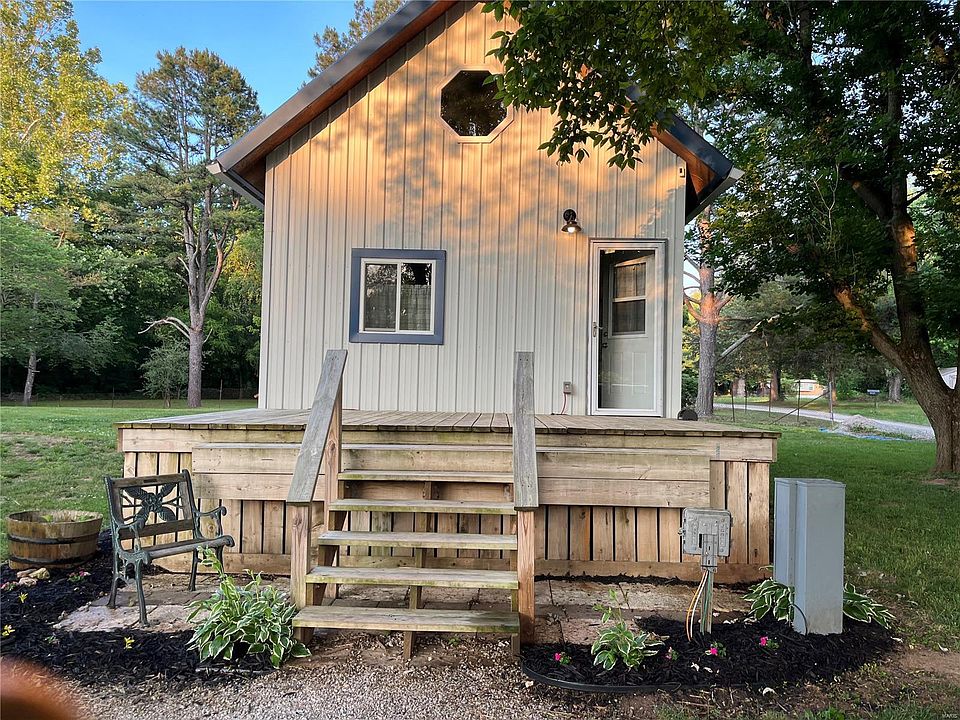 Take a look at this adorable home that was been completely rebuilt! Driving up to the property, you're greeted with a large deck to the front door, entering the home you'll immediately feel cozy with the open floor plan. The entire main level has luxury vinyl flooring. There is an eat in kitchen with lots of charm. headed toward the back of the home, you'll find a family or living room that can also be made in to a second bedroom. Laundry is right off the kitchen and before you reach the beautifully redone bathroom. There is a small set of stairs up to the spacious loft bedroom. Almost a full acre of completely flat land and an outdoor shed for additional storage. There is also a second deck off the back of the home. Perfect for entertaining guests for a BBQ! Don't miss the opportunity to see this home. It could be yours!