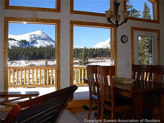 Absolutely AMAZING unobstructed mountain views from this mostly furnished log sided home that has almost daily visits from moose in the area. Easy year round access. Home features floor to ceiling windows to take in the views & the sun, T&G ceiling, hardwood floors, slate countertops, nook loft, knotty pine doors throughout, family room, huge deck and a metal roof. Only 25 minutes to Breckenridge.