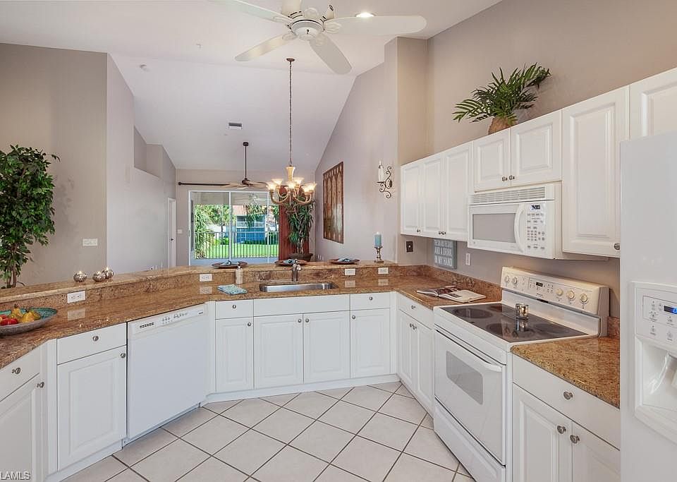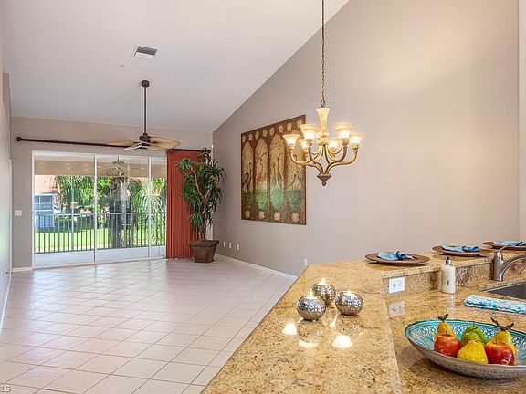 Serene views of palm trees, lakes & fountains at either end of this spacious open-concept condo. Al fresco dining can be enjoyed in the large screened lanai & cocktails & sunset on the open lanai off the kitchen, all while watching the deer that roam the community! One of the largest condos in Carlton Lakes at 2,050sf, tastefully decorated & impeccably maintained in this 2nd floor home with vaulted ceilings, with a split bedroom floorplan (great for entertaining guests) & 1-car garage. New carpet in 2nd bedroom. The kitchen features granite countertops, SS sink, eat-in kitchen area & breakfast bar. Professionally painted in neutral colors 2017, new A/C 2017. Enjoy a refreshing dip at the neighborhood pool steps from condo. Carlton Lakes is a pet friendly community. The clubhouse is a short walk & has a large pool & spa, fitness room, bike paths, tennis, basketball & bocce courts, tot lot, fishing pier, library & spacious community room for the many activities available. Walk to the Publix grocery store & plaza, or to the new seed to table Oakes Farm opening soon. Carlton Lakes is close to beautiful beaches, shopping, golf, entertainment & is a 20-min drive from Ft Myers airport.