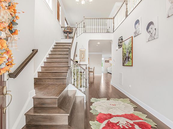 Discover luxury living at its finest with this stunning Prescott II floorplan, perfectly positioned in one of the most private locations in the neighborhood, backing to a serene Forest Conservation Area. This 2-car front-load garage detached home welcomes you with a generous flagstone front porch, setting the tone for the elegance within. Step inside to a grand two-story foyer featuring an oak staircase, and be captivated by the bright, open-concept main level. The gourmet kitchen boasts light cabinetry, gleaming granite countertops, and stainless steel appliances, flowing seamlessly into the living spaces ideal for entertaining and everyday living. A separate home office offers a quiet retreat, while the planning area off the kitchen and mudroom adds convenience to your daily routine. Sophisticated crown molding, cased windows and doors, and a cozy gas fireplace in the family room enhance the home's refined atmosphere. Hardwood floors span the entire main level, leading to a spacious composite deck that overlooks the tranquil, expanded backyard. The upper level features an open loft/hallway with upgraded hardwood floors, four spacious bedrooms, and three full baths, including a luxurious owner's suite with a soaking tub, separate shower, upgraded tile, and granite vanity countertops. The convenience of an upstairs laundry room adds to the appeal. The finished lower level offers even more space to relax and entertain, with an open recreation room, a separate media room, a fifth bedroom, and a full bath. The walkout basement opens directly to the expansive, private backyard perfect for gatherings or quiet moments with nature. Located in one of Frederick's most convenient communities, just 1 mile from I-270 and 4 miles to downtown Frederick. Residents enjoy access to an 8,000 square foot community clubhouse, complete with a fitness center, yoga/flex room, outdoor pool, and the scenic 5-mile Ballenger Creek Trail. 24-36 month lease