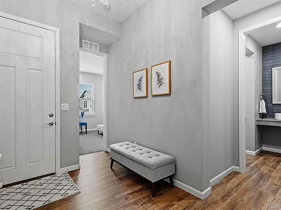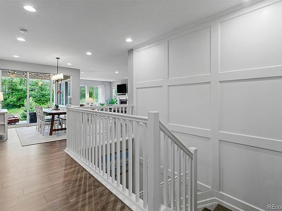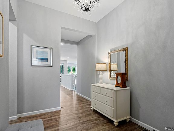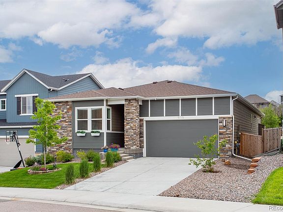 This sprawling ranch is ideally located on a private lot backing to wooded open space. Built in 2020, this immaculate home features hand selected upgrades making your first impression warm & welcoming. Upon entry, you will take note of the wide-planked luxury vinyl flooring, soft gray walls & high ceilings that are highlighted by an abundance of natural light. The open floorplan is ideal for entertaining as the kitchen, living room & dining area function as one. The oversized center island is perfect for gatherings of any size & features a large farmhouse sink. The gourmet kitchen was designed for the inspired home chef complete w/ 6-burner gas cooktop + microwave/convection oven & wall oven. Painted gray cabinets pair nicely w/ full tile mosaic backsplash. The living room offers views of the backyard + gas fireplace for those cool Colorado evenings. Take note of the 16’ board & batten accent wall providing an aesthetic focal point. The primary suite is light & bright w/ captivating backyard views. The primary bathroom is a peaceful retreat with a large walk-in shower w/ pebble tile floor & striking black tile. Dual vanities & spacious walk-in closet complete this space. Access the covered back patio through 8’ stackable glass doors, where you can enjoy quiet summer evenings & the occasional wildlife visitor. The main level features a secondary bedroom with en-suite bath, office, laundry room & powder bath. The possibilities are endless in the unfinished basement. Roughed in plumbing + 3 egress windows provide a blank canvas ready to bring your wildest dreams to life! Notable features include an EERO system providing an expansive internet connection, built-in wiring for surround sound & lots of storage. Enjoy all the perks of living in Terrain, including dog bone park, terrain swim club & Ravenwood Pool and Park, plus many other community activities. Proximity to downtown Castle Rock offers quick access to shopping & dining. This is one you do not want to miss!