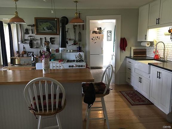19+ acres including a 4 stall horse barn plus a pole barn! Wonderfully restored 4 bdrm farmhouse with a formal dining room & a large open living room with a wd burning fireplace and beautifully restored original wide plank floors plus an abundance of windows overlooking the pasture. A slate countertop adjacent to the farmhouse sink is located right near the huge walk-in pantry! First-floor bedroom, first-floor laundry, and first-floor bath add to the many conveniences this home has to offer along with the newly renovated mudroom entry with a unique slate floor and a one of a kind sliding barn door. Large workshop area off the mudroom allows space for those that like to putter - Great house with acreage bordering state land including a trail system as well as an adjacent limited use road!