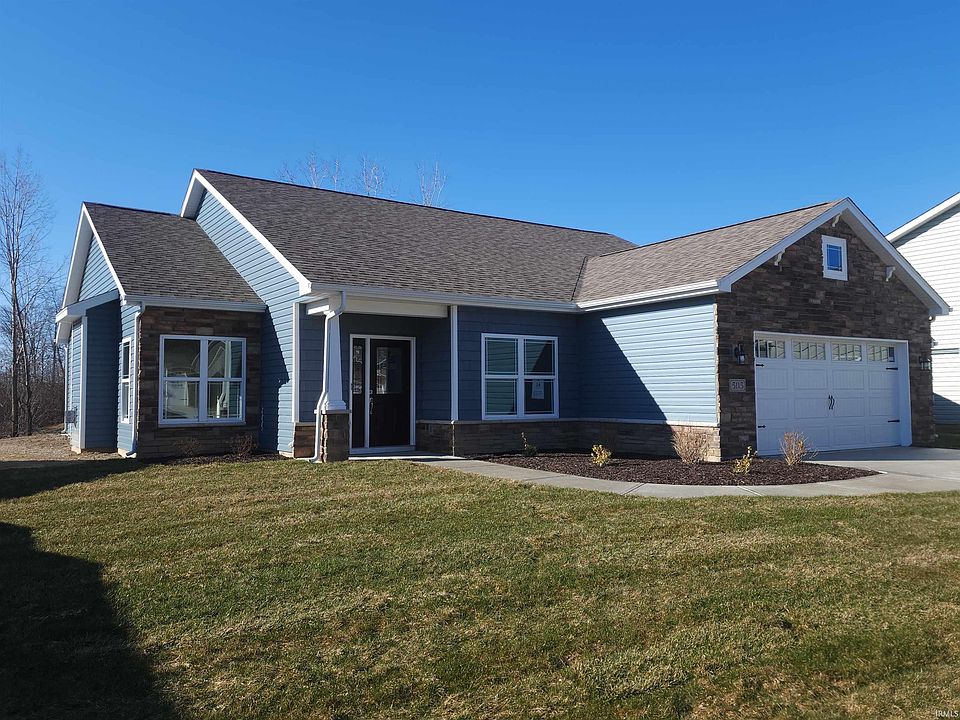 This model is back on the market due to the Buyer being unable to complete the purchase as planned. Located in The Cottages of Catania is the Rose' by Majestic Homes. Directly behind this home is a beautiful protected woods that offers a very private and relaxing view from the home. Additionally, this home offers a beautiful stone front elevation, 3 bedrooms, 2 full baths, a large master suite with a tile shower, an open concept kitchen to great room, a sun room, laundry room, large dining area, and spacious 2 1/2 car garage. On top of the quality standards Majestic Homes is know for these homes also offer an emphasis on accessibility, quartz or granite kitchen countertops, custom Amish built cabinets throughout, blocking for grab bars in baths, Luxury Vinyl Plank throughout living areas for minimal threshold, full ceramic tile showers, 9' ceilings throughout, taller vanities in all baths, LED garage & attic lighting, and more. A few of our other standards include Tru Definition 35 year Shingles, 12" Exterior overhang around the entire perimeter, sod & irrigation in the front yard, Lennox 95% furnace, 50 gallon high efficiency water heater, programmable Wi-Fi Thermostat, 1/2" Spray Foam insulation w/Batt on all exterior living area walls, floored attic, water softener, programmable keypad, closet organizers, over & under LED cabinet lighting in the kitchen, Frigidaire Gallery Series Stainless appliances in the kitchen including refrigerator, Gas log fireplace, and more.