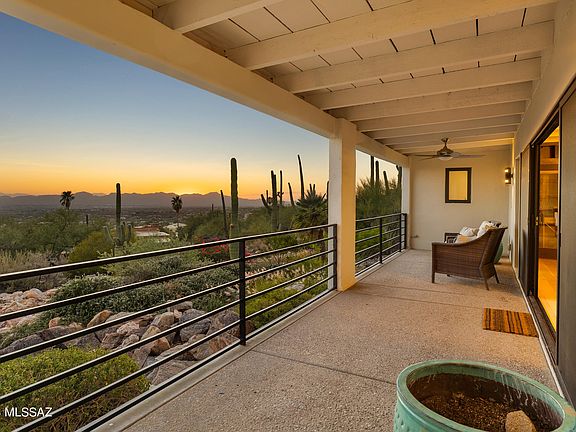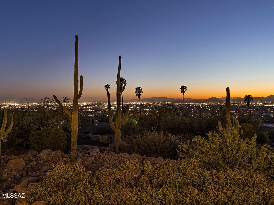 One of the best view lots in Tucson, nestled in coveted Skyline Country Club Estates. Jaw dropping full unobstructed city light views plus spectacular up-close Santa Catalina mountain views. Updated three bedroom, three bathroom contemporary with open kitchen to the greatroom. Updated kitchen with newer stainless steel appliances. Sliding glass doors to the North and South provide for wonderful views from the entirety of the living spaces. Beautiful primary suite, also with spectacular city views and thoughtfully appointed bathroom with large walk-in shower, separate soaking tub, plus good sized walk-in closet with custom built-ins. Two additional bedroom suites each with their own full, updated bathrooms. Wonderful back patio with built-in grill and seating. Recently renovated roof with three year transferable warranty. Newer HVAC. Awesome paver driveway. Freshly painted exterior.