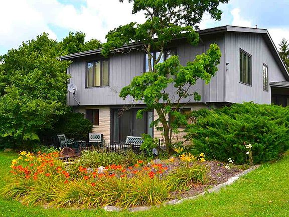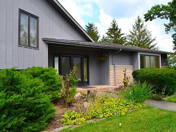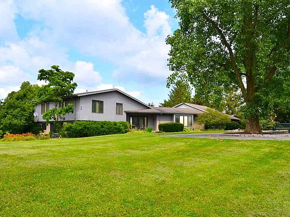 The price stated on this property is the assessed tax value (for MLS purposes). This property is being sold at public auction on Saturday, August 26th at 10:30am. This property may sell for more or less than the assessed value, depending on the outcome of the auction bidding. This 4,500sf Mid-Century Modern tri-Level home, positioned back from the road and on a slight hill and surrounded by trees, offers 10.03+/- acres of great land. The front French Style door opens to the foyer with tile floors, vaulted ceilings, dual staircase and extends into the adjacent living room & kitchen. The living room offers vaulted ceilings, limestone wood burnings fireplace, ceiling beams & picture windows overlooking the property and offers a great place for gatherings. The dining room's windows, like the living room, overlook the property and features a beautiful chandelier that will sparkle up any formal occasion. The kitchen features a large center island with cooking, cleaning & eating spaces, a tremendous amount of storage, laminate countertops and faces the front of the home. The lower level of this tri-level offers multiple living spaces. The family room provides special features starting with the walkout French doors to a lower patio, bar area and surround speakers in the ceiling. A bedroom and full bathroom make up the remaining area of the lower level. The upper level of the home provides a large master suite and bathroom with newer tile shower. The other two bedrooms are large in size and share a large Jack & Jill bathroom. A 1,500sf, 2 story workshop/recreational area was added to the far south of the original tri-level home. The downstairs features a large workshop for wood working or any other hobby. Compressed air was installed around entire shop along with 200amp service. The upstairs to this area features a large recreational area with a full bathroom. Other distinctive features include the large 18' x 36' in-ground swimming pool and pool house with a half bath, Mid-Century Modern character, panoramic windows, Water Furnace closed loop ground system, beautiful and well maintained landscaping/lawn with multiple gardens and gazebo, oversized 2 car garage.